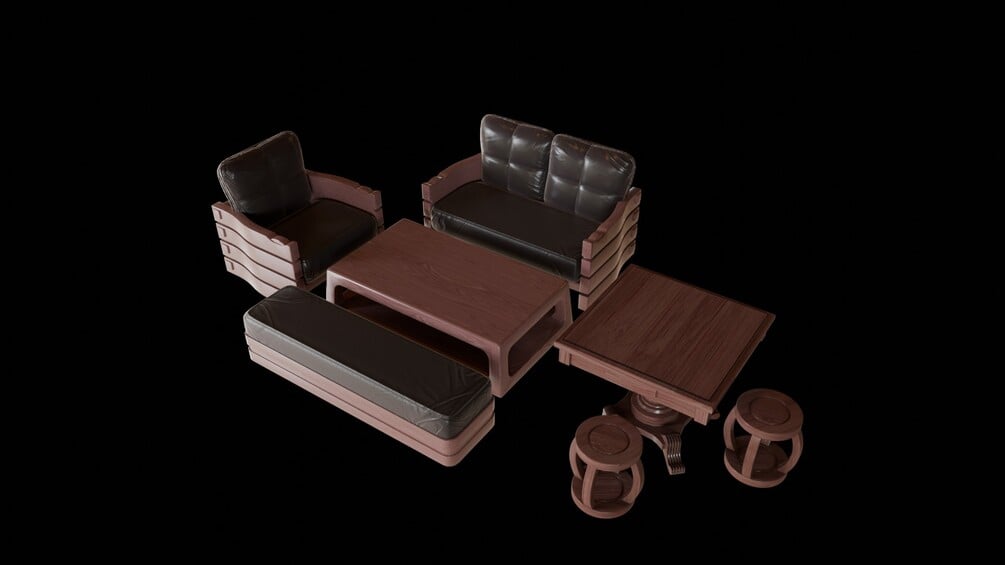 A modern Chinese sofa set I modelled after the one standing in the livingroom of my parents in law a pretty while back.